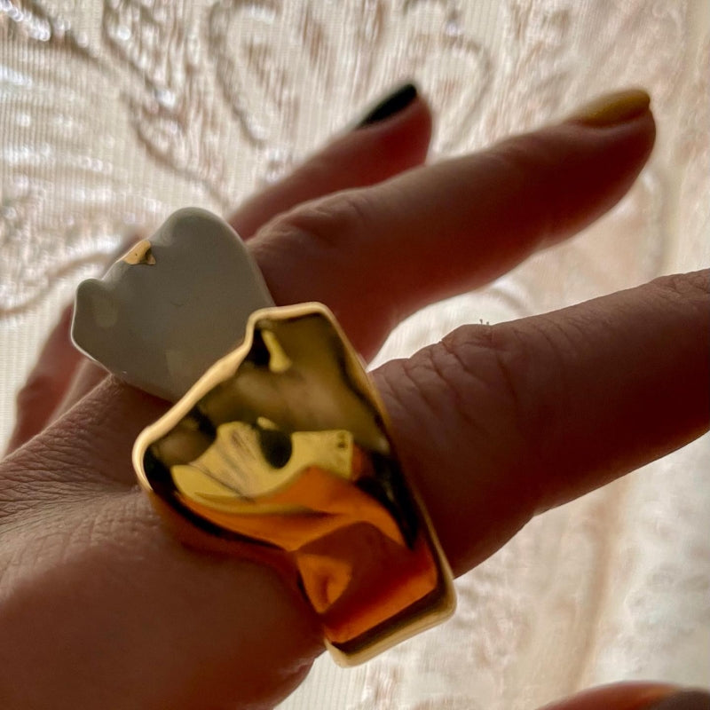 Artisanal Ceramic Ring Blanche Bling Mask -