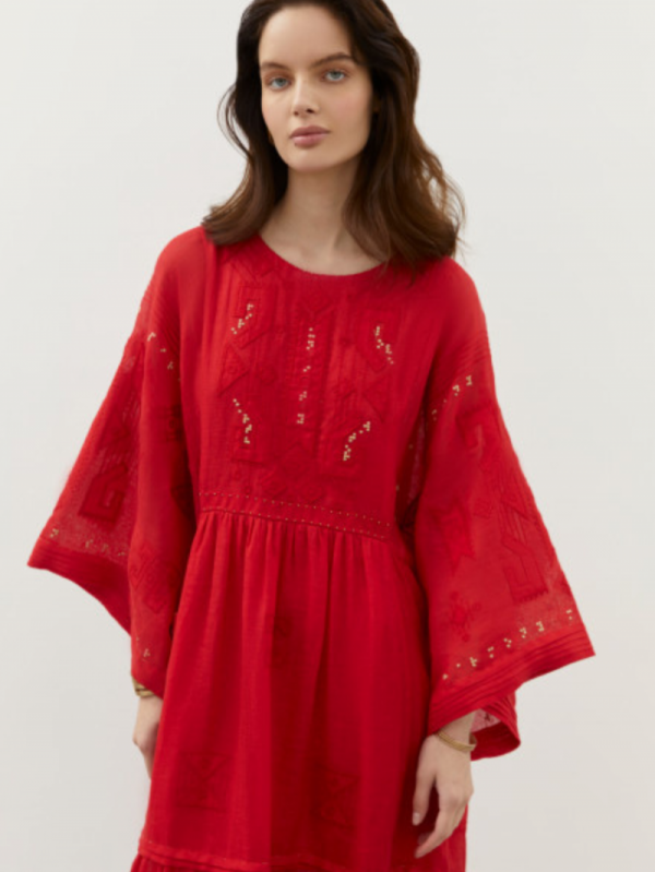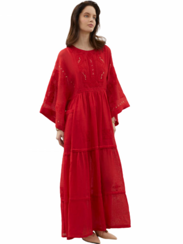 Braille Long Red Embroidered Dress