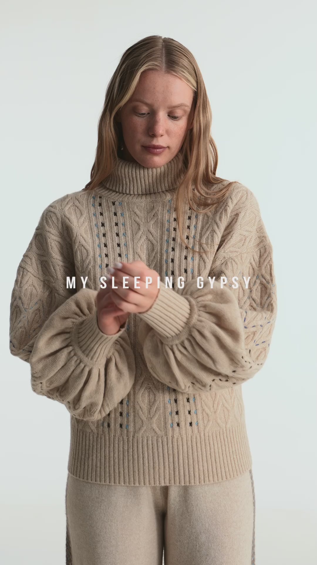 Fondată de Katya Hermann în timpul Revoluției Ucrainene, My Sleeping Gypsy este condusă acum de cinci femei din medii diverse, unite de design conștient și producție responsabilă. Brandul reprezintă sustenabilitatea, moștenirea și cultura, promovând moda lentă cu piese atemporale, create pentru a rezista. Această colecție amplifică viziunea cu cașmir mongol din surse responsabile - pentru că oamenii nu au nevoie de mai multe haine, ci de unele mai bune.
